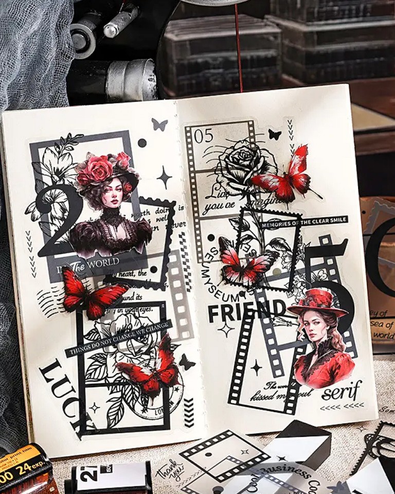 استیکر نگاتیو و فریم میکس آرت Dark elegant flower rhyme